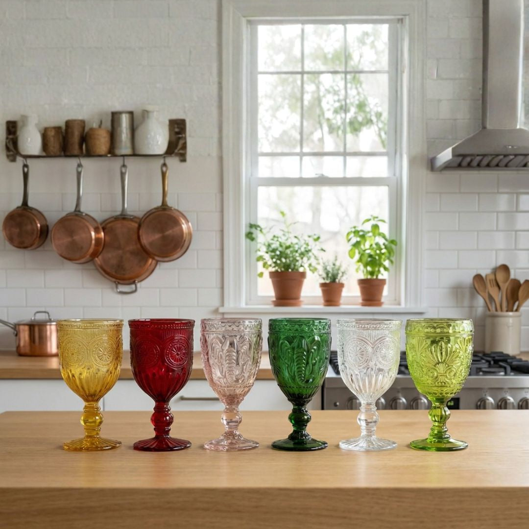 Las copas de vidrio están fabricadas con material de alta calidad, lo que las hace resistentes. No se destiñen, incluso con son aptas para lavavajillas.